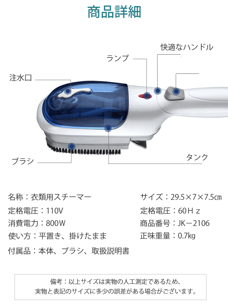名前:衣料用スチーマー