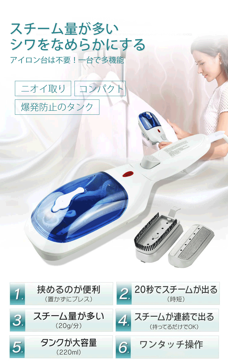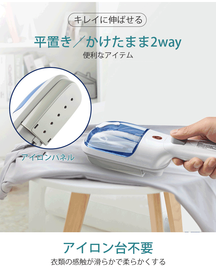 アイロン台不要、スチーム量が多い、ニオイ取り、コンパクト、除菌