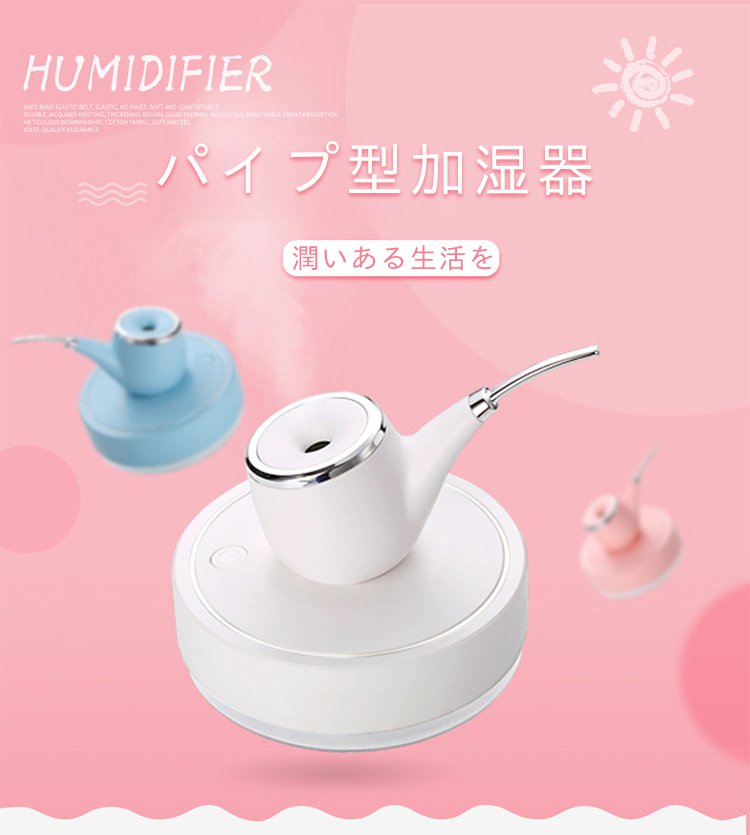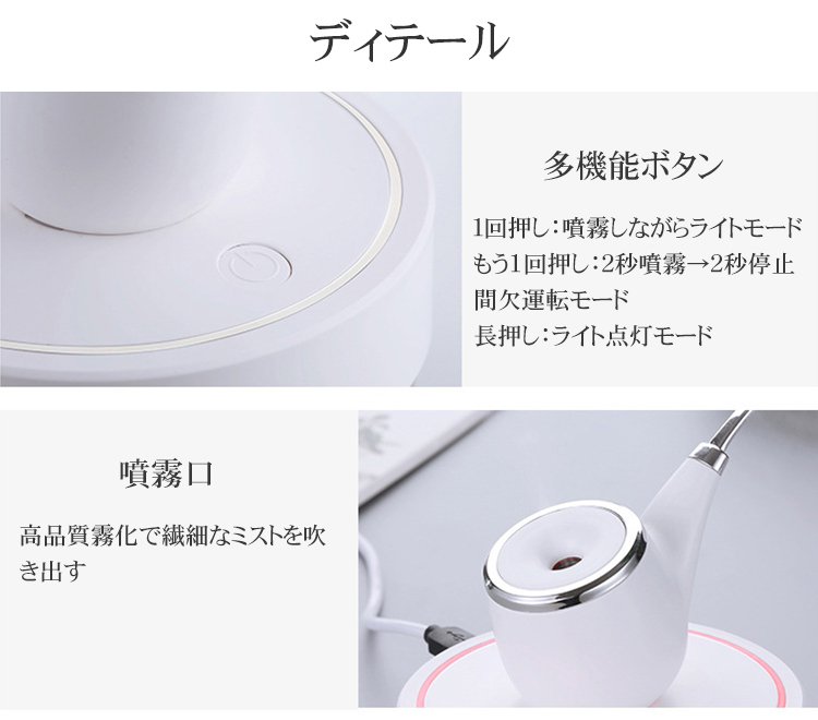 【パイプ型加湿器】超細微 コンパクト 自動停止機能 7色のLEDライト